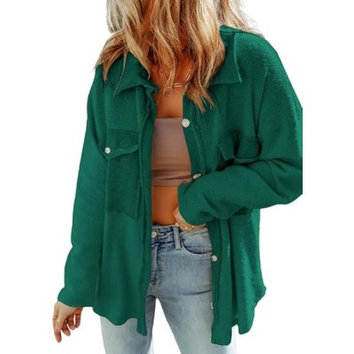 Womens Lapel Long Sleeve Raw Edge Shacket Jacket Button Down Fall Shirt Coat with Pockets