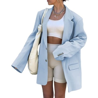 Women's Casual Long Sleeve Lapel Oversized Button Work Office Blazer Suit Jacket