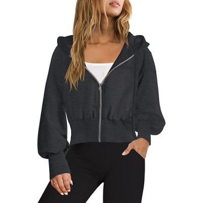 Womens Lightweight Cropped Zip Up Hoodies Sweatshirts With Pokcets Oversized Workout Hoodie