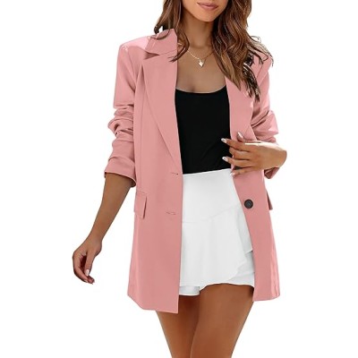 Casual Blazer Jackets for Women Fall Long Sleeve Open Front Button Work Office Suit Jacket with Pockets