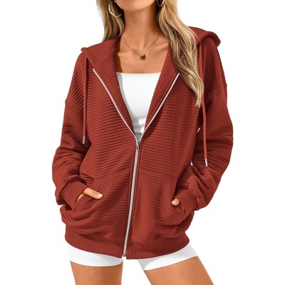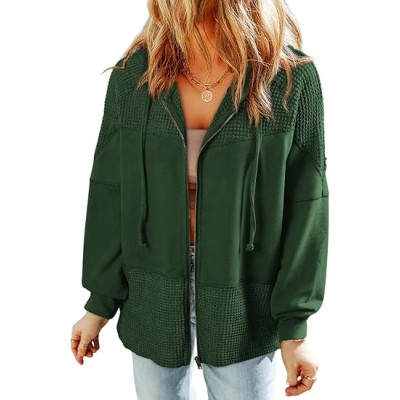 Waffle Knit Hoodies for Womens Zip Up Drawstring Fall Casual Trendy Clothing Jackets