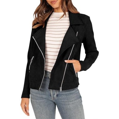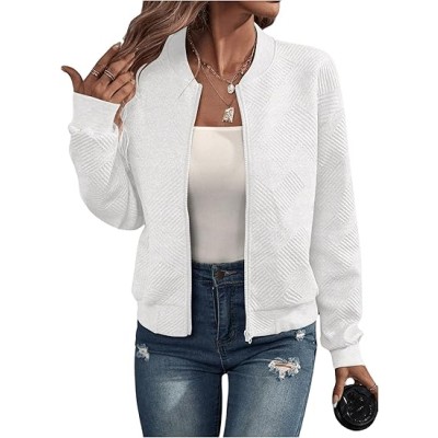 Women's Zip Up Long Sleeve Bomber Jacket Casual Outerwear