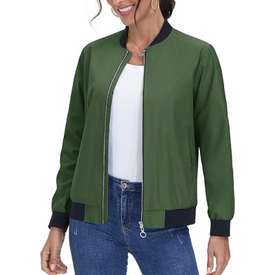 Women's Casual Bomber Jacket Lightweight Windbreaker Jackets Windproof Spring Fall Jackets with Pockets