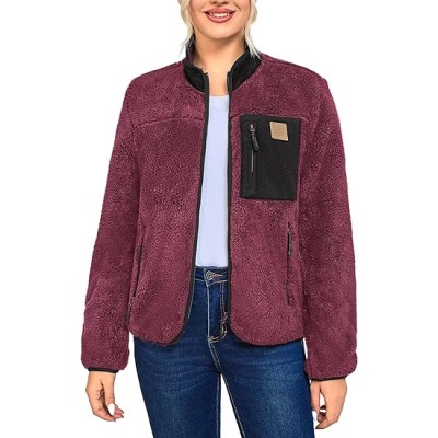Women's Winter Hoodies Sherpa Fleece Jacket Warm Lightweight Sweatshirt Zip Up Outerwear Fuzzy Coat