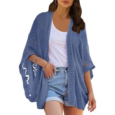 Crochet Cardigan Sweaters for Women Open Front Kimono Batwing Sleeve Plain Casual Lightweight Outerwear