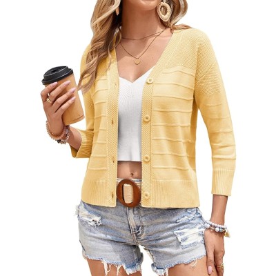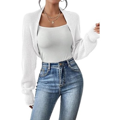 Women's Cropped Cardigan Sleeve Button Down Bolero Shrug Knit Sweater Tops Open Front Lightweight