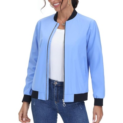 Women's Casual Bomber Jacket Lightweight Windbreaker Jackets Windproof Spring Fall Jackets with Pockets