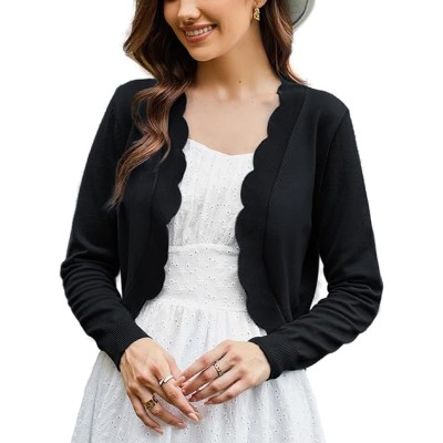 Women's Cropped Cardigan Scalloped Bolero Sweater Lightweight Knit Shrugs for Dresses