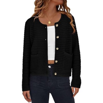 Women's Crew Neck Button Down Long Sleeve Solid Knit Classic Cardigan Sweater