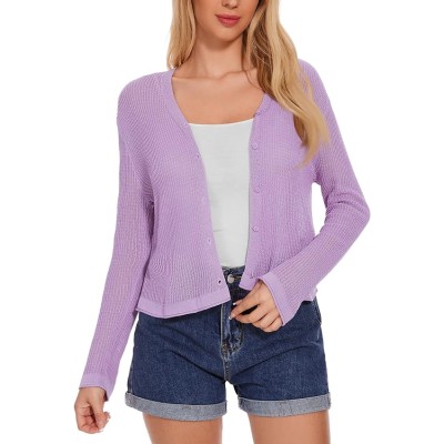 Womens Long Sleeve Cropped Lightweight Cardigan Button Down Sweaters V Neck Bolero Shrugs for Dress