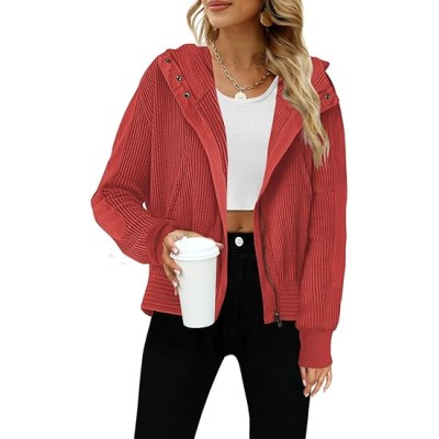 Womens Waffle Knit Hoodies Zip Up Shirt Jacket Slouchy Short Jackets Casual Long Sleeve Shackets