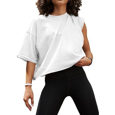 Women's Oversized Crop Tops Roll Hem Half Sleeve T-Shirts Drop Shoulder Casual Summer Tops
