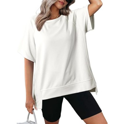 Oversized T Shirts for Women Crewneck Short Sleeve Casual Summer Tops Lightweight Loose High Low Blouse
