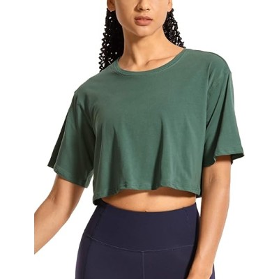 Women's Pima Cotton Workout Crop Tops Short Sleeve Yoga Shirts Casual Athletic Running T-Shirts