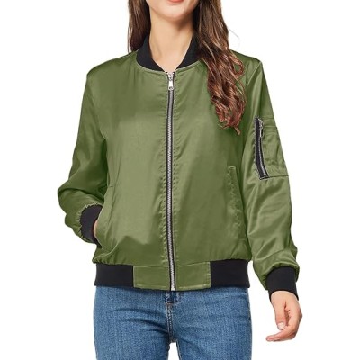 Women's Zip Up Long Sleeve Bomber Jacket Casual Outerwear