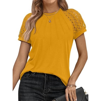 Womens Tshirts Trendy Fashion Tops Lace Short Sleeve Business Tee Shirts Casual Knitted Blouses Summer Outfits