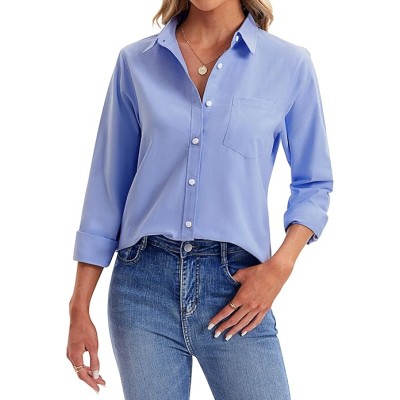 Womens Button Down Shirts Long Sleeve Collared Office Work Blouses Tops with Pocket Oxford Shirts