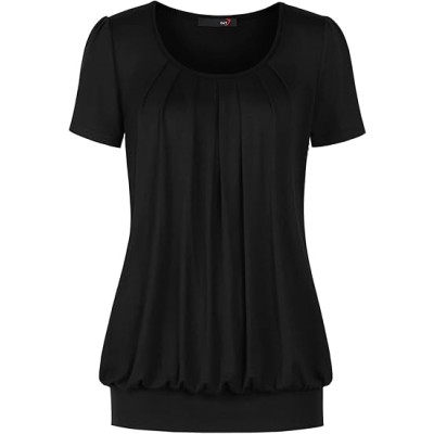 Women's Short Sleeve Summer Tops Scoop Neck Pleated Front Casual Tee T Shirt