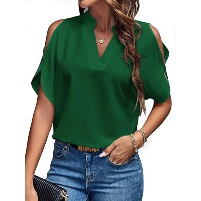 Women's Summer Tops Dressy Casual Notch V Neck Ruffle Short Sleeve Flowy Shirts Cute Blouses Tops