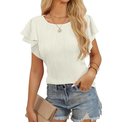 BLouses for Women Dressy Casual Trendy Cute Summer Shirts Fashion Ruffle Sleeve Business Tops for Women